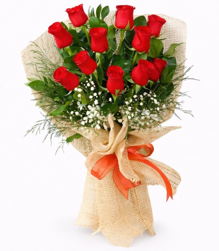 11 Adet İthal Kırmızı Gül